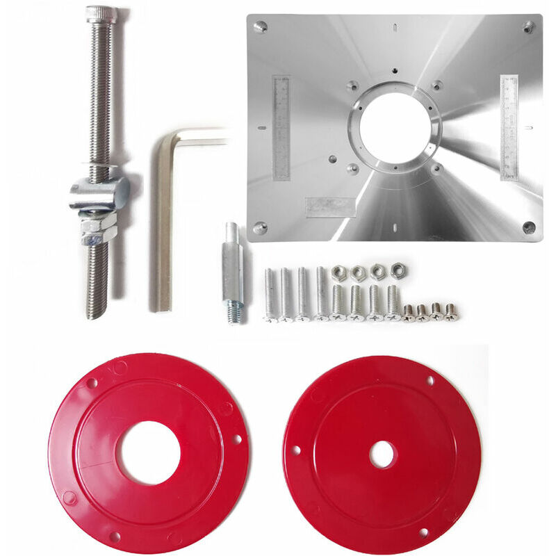 Include un kit di sollevamento della fresatrice da aggiungere alla funzione di regolazione dell'altezza della fresatrice a immersione (è necessario praticare da soli un foro nella base della fresatrice). Piastra distanziatrice multifunzionale con anelli, adatta per realizzare la propria alta precisione Caratteristiche del tavolo del router per la lavorazione del legno: Piastra distanziatrice multifunzionale con anelli, adatta per realizzare il proprio tavolo del router per la lavorazione del legno ad alta precisione Realizzato in resistente lega di alluminio per un uso prolungato. L'anello del foro centrale viene utilizzato per allineare il router in modo che sia centrato nel foro. È facile da usare, consente di risparmiare fatica e manodopera e allo stesso tempo gestisce ed espande l'uso della dentatrice La lavorazione CNC ad alta precisione garantisce una qualità perfetta Specifiche: Materiale: lega di alluminio Colore: rosso, nero (opzionale) Dimensione: 3 00 * 235 * 9 mm / 11,8 *
