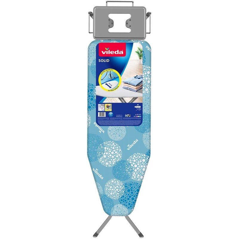 Asse da stiro solida vileda spazio per stirare: 122x44cm 157957. asse da stiro stabile e resistente di medie dimensioni, adatto ai centri di stiratura e con una superficie extra large. struttura progettata per far passare il vapore. sistema di regolazione dell'altezza.