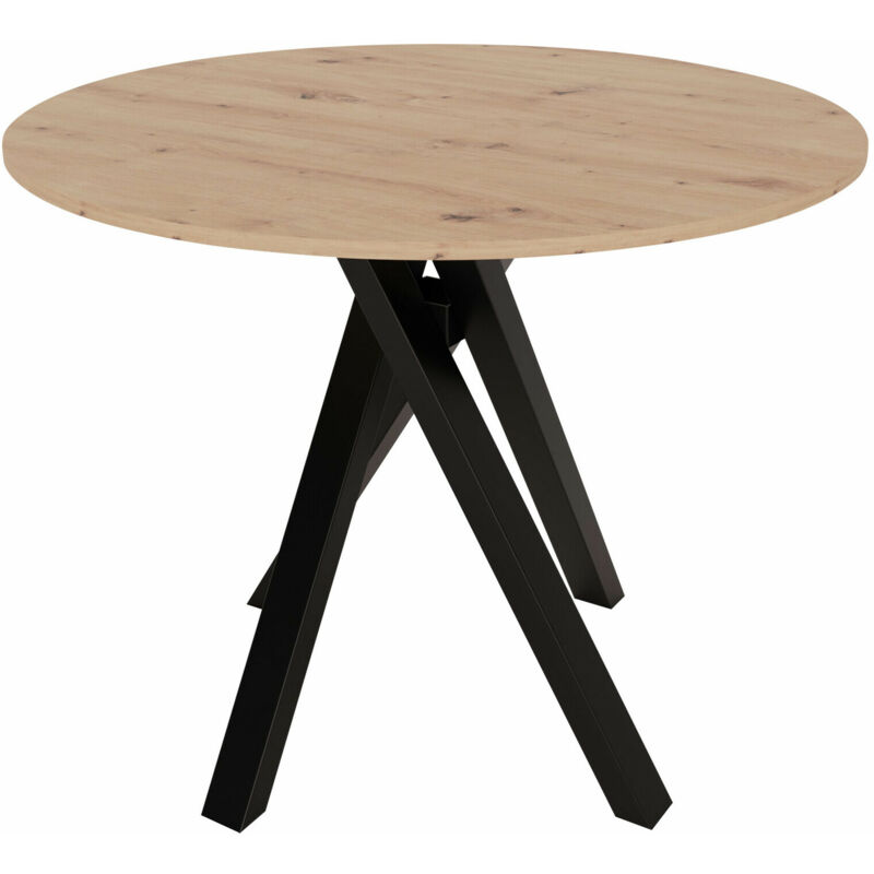 Tavolo Stanton 147, Rovere Artisan + Nero, 75cm, Truciolare laminato, Metallo Caratteristiche Tempo previsto di consegna: 15 giorni lavorativi Origine: Unione europea Materiale aggiuntivo: ABS Materiale del piede: Metallo Colore: Rovere Artisan Colore: Nero Materiale del piano d'appoggio: Truciolare laminato Diametro: 920 mm Spessore del piano di lavoro: 16 mm Peso: 14 kg Estensione: No Altezza: 750 mm Codice prodotto: 554642 Angoli protetti I bordi dei mobili sono ricoperti da nastro adesivo di finitura: questo materiale è realizzato in plastica resistente, che viene solitamente utilizzata per proteggere i bordi delle assi dei mobili. Prodotto nell'Unione Europea