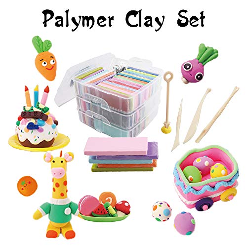 Colori vividi: combinazione di 60 colori da 28,3 g/blocchi, 19 strumenti per scolpire argilla e 14 tipi di accessori diversi per fornire infinite possibilità fantasiose e creative per i bambini.