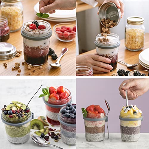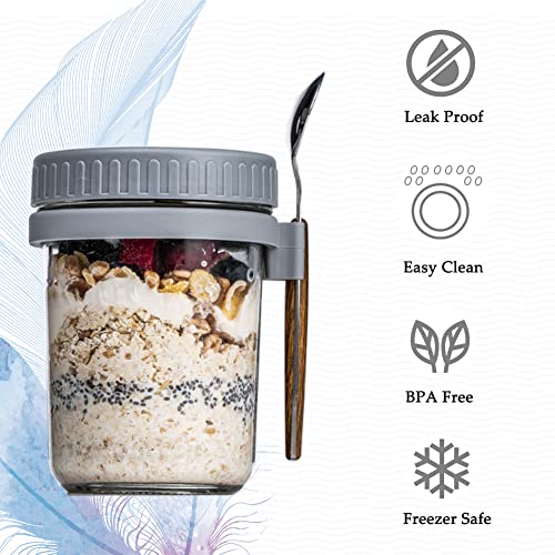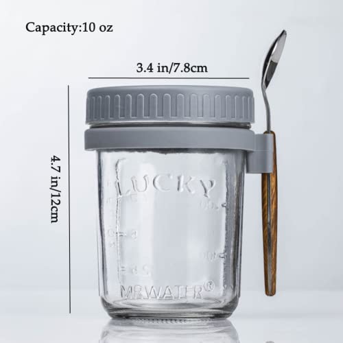 Taxually Overnight Oats Jars with Lids, 350 ml Tazza in Vetro con Coperchio,Breakfast Jar, Yoghurt Container, Cereal Cup On the Go Portatile con Cucchiaio per il Lavoro, La Scuola, L'asilo Nido