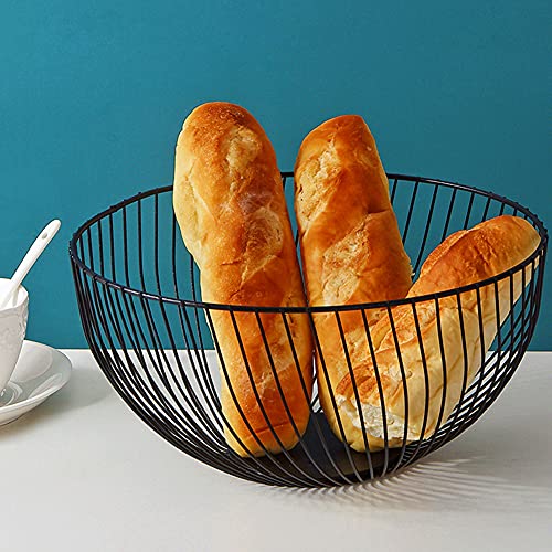 Taxually Portafrutta Nero, Cestello per Frutta in Metallo, 25x14cm Moderno Fruttiere Grande, Porta Frutta da Tavolo Moderno,Cesto Frutta in Filo Metallico, Fruttiera per Cnservare Frutta, Pane,Snack