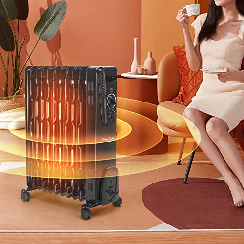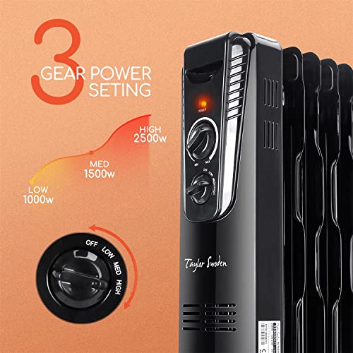 Taylor Swoden Radiatore ad olio 2500W, Radiatore elettrico 11 elementi, anti-ribaltamento, 3 impostazioni di calore, termostato e spegnimento automatico di sicurezza,Timer e Vano Avvolgicavo,nero