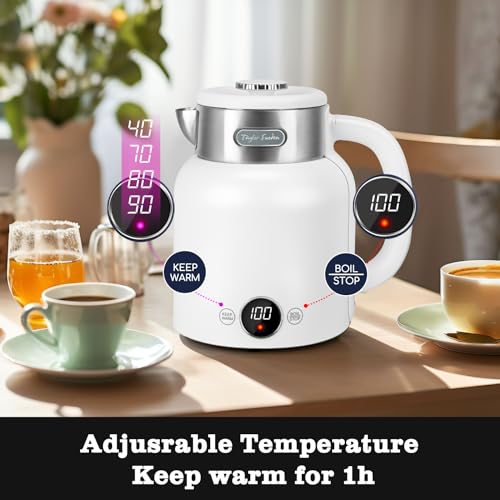 【Temperatura e isolamento regolabili】 Questo bollitore elettrico ha 5 gradi di temperatura tra cui scegliere, rispettivamente 40 ℃ / 70 ℃ / 80 ℃ / 90 ℃ e 100 ℃, adatto per preparare la giusta temperatura dell'acqua per tè, latte in polvere, caffè. funzione di isolamento calore per un'ora, in modo che tu possa poi bere acqua calda in un'ora di tempo, senza bollire ripetutamente