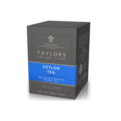 Taylors of Harrogate | Singolo Té Nero di Ceylon | Tè Nero Delicato e Dorato | Black Tea Bags - 20 Bustine di Tè (50 Gr) | Ceylon Tea Nero