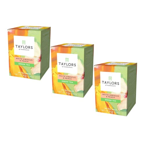 Taylors of Harrogate | Tè Verde Sencha | Tè Verde Ibisco Bianco e Pesca - 60 Bustine di Tè (90 Gr) | Green Tea Bustine