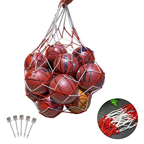 TAZEMAT Borsa a rete in rete per palloncino da trasporto robusta per basket-Ball Football Volley-Ball Borsa multifunzione per frutta rossa e bianca con 5