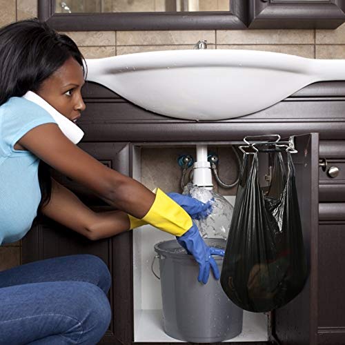 SALVA TEMPO E SPAZIO: Il supporto per il sacco della spazzatura appeso funziona in modo facile, semplice ed efficace, puoi lasciarlo aperto, comodo per lo smaltimento dei rifiuti e ti fa risparmiare tempo per pulire il cestino e puoi riutilizzare i sacchetti di plastica per la spesa.