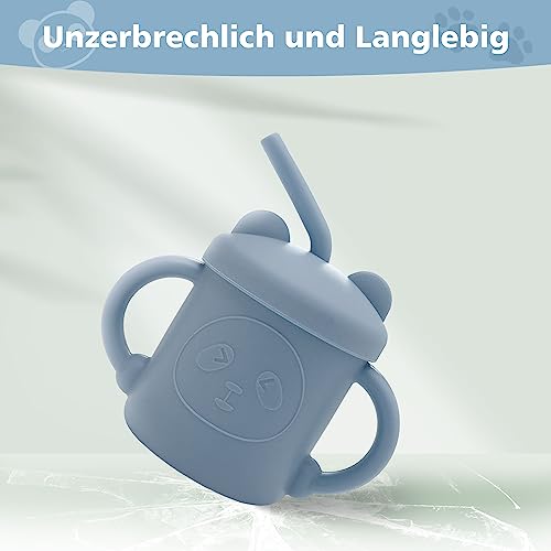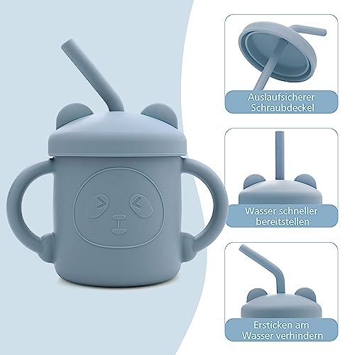 Tazza per Bambini in Silicone, 200 ml Bicchiere di Allenamento con Cannucce e Manici Baby Training Cup per Microonde e Lavastoviglie, Senza BPA, 9+ Mesi, Blu