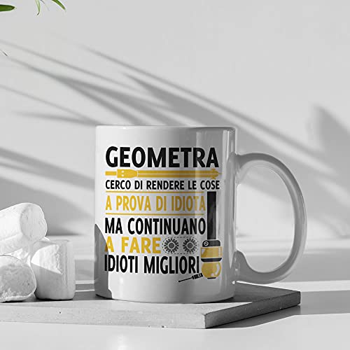 Tazza in ceramica Geometra. Regalo Simpatico Cantiere. Idee Regali Originali Geometria, Regalo per geometri. Idee regalo Natale Colazione Caffè (Bianco, Ceramica)
