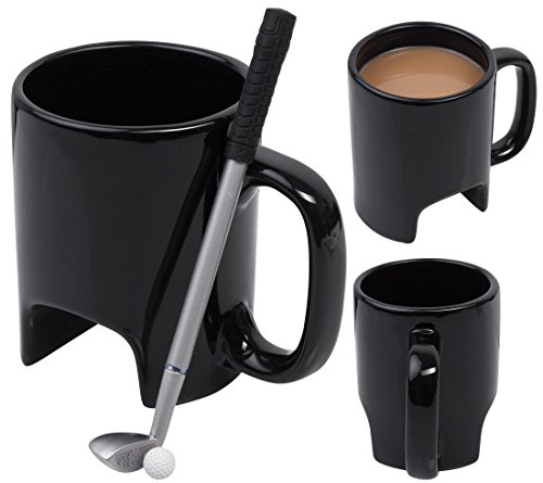 Una tazza di classe con la putting-tunnel, una pallina da golf e un mini-pipistrello, che è anche adatto per mescolare