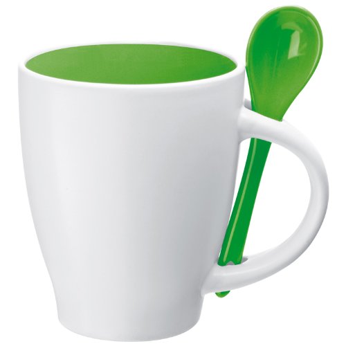 Tazza mug colazione in porcellana con cucchiaio e interno colorato