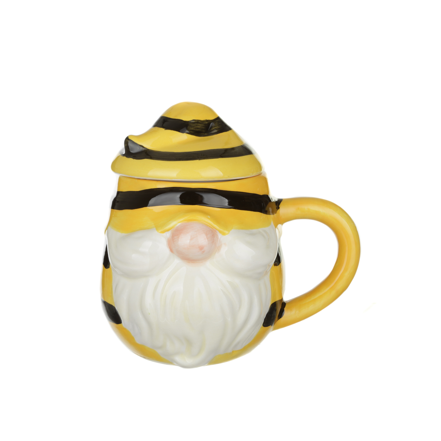 Aggiungi un dettaglio originale alla tua dispensa in cucina con questa capiente tazza in dolomite. A forma di gnomo con nasone e barba bianca, ti accompagnerà nelle tue pause di gusto bevendo un tè o una cioccolata e terrà le bevande al caldo grazie al coperchio incluso. L'ampio manico ti permette di afferrarla saldamente e puoi usarla anche nel microonde. Il decoro con dettagli a tema api è dipinto minuziosamente a mano... che bella idea regalo! La mug ha capacità 420 ml.