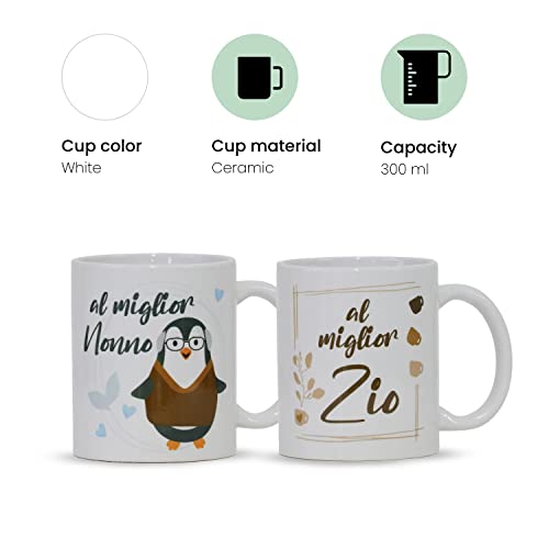 Tazza in ceramica bianca da 300 ml prodotta in Italia.