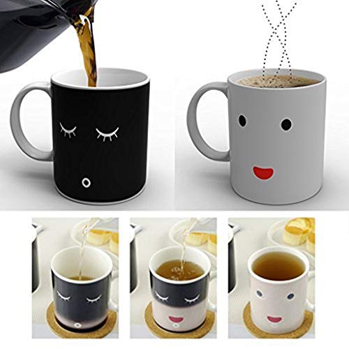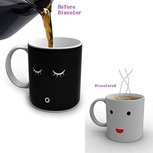 Come attivare il cambiamento di colore: a temperatura normale, ha occhi chiusi modello tazza nera, proprio come il sonno. Dopo aver versato la tazza in acqua calda (bevande o caffè a 70 °C), la tazza cambia colore con la temperatura. Un motivo sorridente è apparso nella tazza, proprio come svegliarsi al mattino
