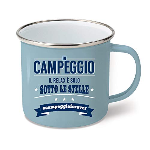 TAZZA IN METALLO SMALTATO CON DEDICA - IN CAMPEGGIO IL RELAX E' SOLO SOTTO LE STELLE - NOME TOP BLOKE - BM020