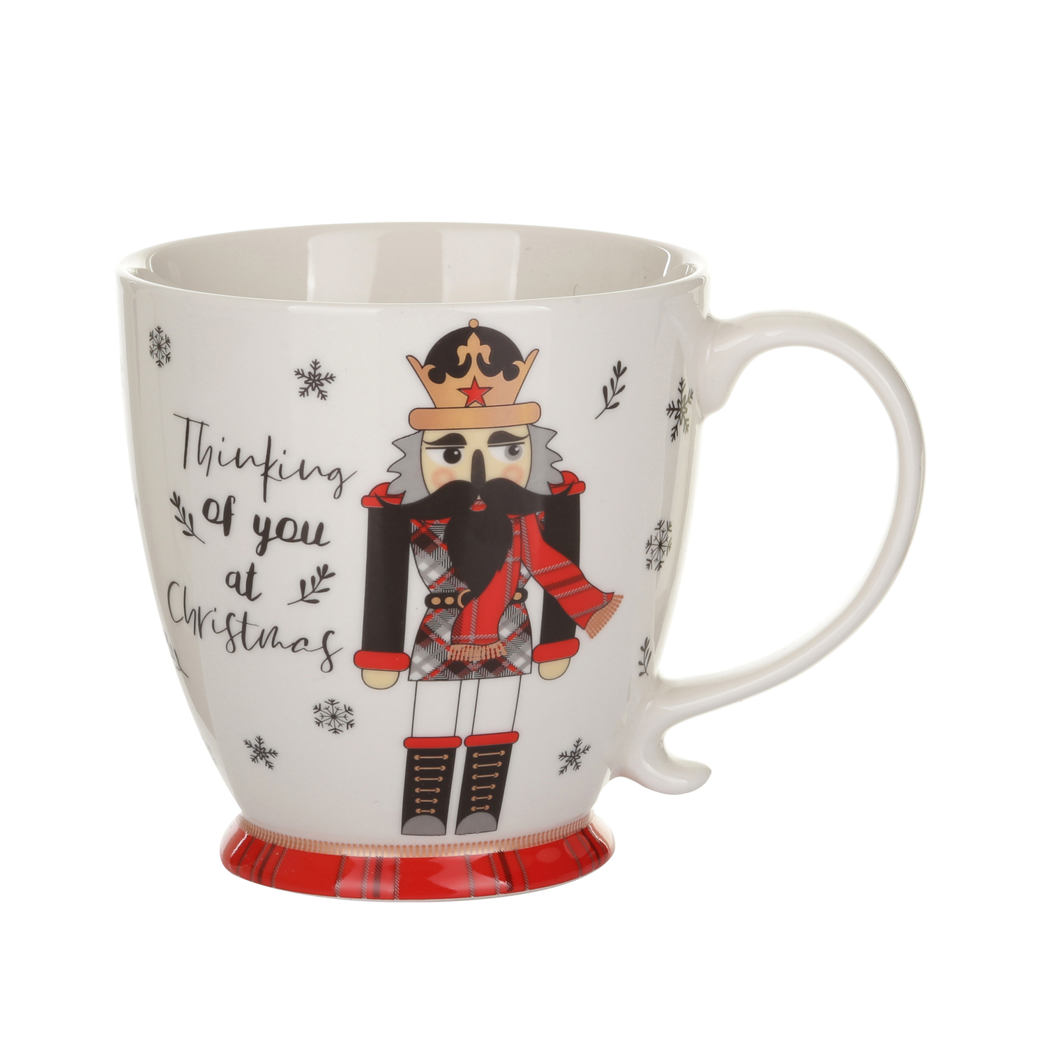 La fiaba di Natale dello Schiaccianoci diventa protagonista dei tuoi momenti di pausa con questa colorata tazza natalizia. Realizzata in fine e resistente porcellana New Bone China, è decorata con il celebre soldatino Schiaccianoci e scritta Thinking of you at Christmas. Sarà il perfetto accessorio per accompagnare i tuoi break a casa o in ufficio durante il periodo delle feste, sorseggiando un buon tè caldo, una golosa cioccolata o una tisana fumante. La mug è adatta all'uso nel forno a microonde e lavabile in lavastoviglie a basse temperature. Una perfetta idea regalo di Natale per amici, colleghi, fidanzate e famigliari! Capacità: 480 ml.