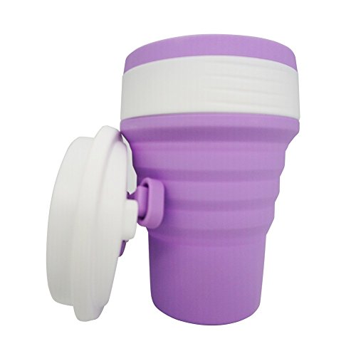 Tazza pieghevole, da viaggio, escursioni, campeggio. Tazza a prova di perdite, pieghevole, in silicone senza BPA (bisfenolo A). Tazza pieghevole da caffè, idea regalo Purple