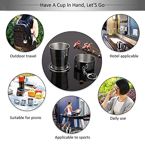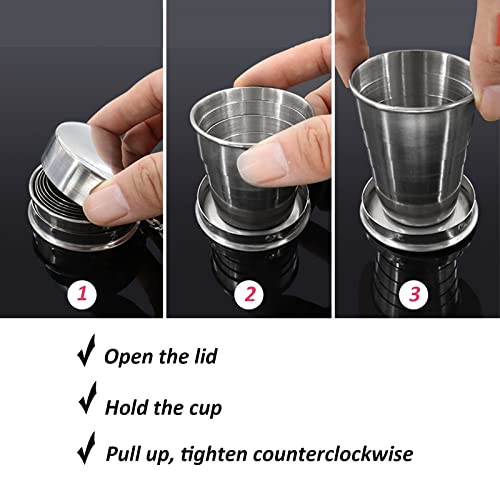 Ampia Applicazione: questa tazza pieghevole in acciaio inossidabile è adatta per il campeggio, l'escursionismo all'aperto, l'alpinismo e il picnic. La tazza in acciaio inossidabile ha un'elevata resistenza al calore ed è adatta per bevande calde come tè, caffè e cioccolata calda.