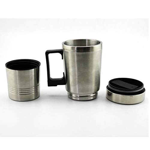 Tazza di scaldabagno Sunnyflowk per Auto - Bollitore Elettrico per Auto riscaldato in Acciaio Inossidabile Tazza di Riscaldamento Portatile con Caricabatterie 12 Volt (Argento (12V))