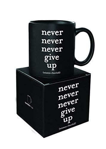 Tazza con scritta in inglese “Never Give Up, Winston Churchill.