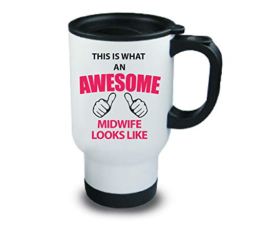 Tazza con scritta in inglese "This Is What An Awesome Midwife Looks Like", idea regalo per compleanno o Natale (lingua italiana non garantita)