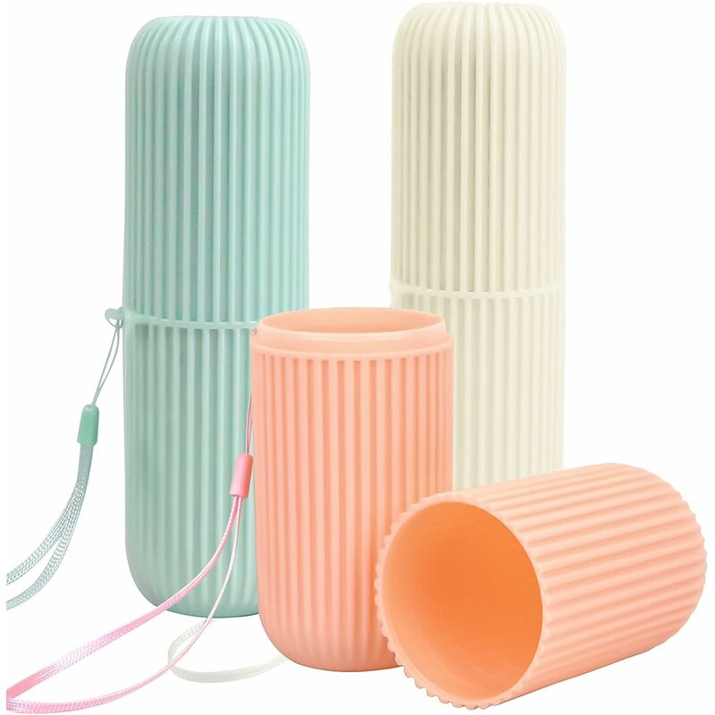 Tazza per spazzolino portatile da 3 pezzi, custodia per spazzolino da viaggio, scatola per spazzolino da denti, tazza per spazzolino da denti per viaggi in campeggio a casa - verde bianco rosa