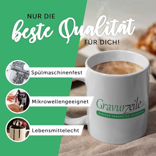 Tazza in ceramica di alta qualità: goditi il tuo caffè mattutino con questa tazza in ceramica di alta qualità. Il classico manico a C è facile da tenere in mano e offre una presa sicura. Il materiale è lavabile in lavastoviglie e resistente al microonde. Sia per voi stessi che come regalo: questa tazza vi accompagnerà a lungo al tavolo della colazione