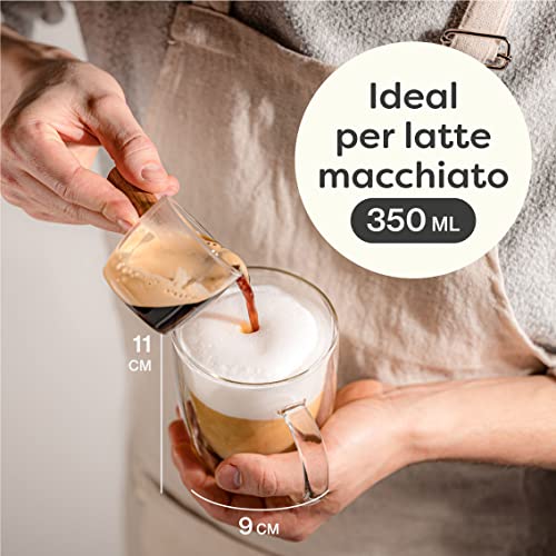 4 Tazza Vetro Doppia Parete Con Manico da 350ml per Latte Macchiato e tè/caffè - Mantengono la Temperatura - Proteggono le Mani - Con Confezione Regalo