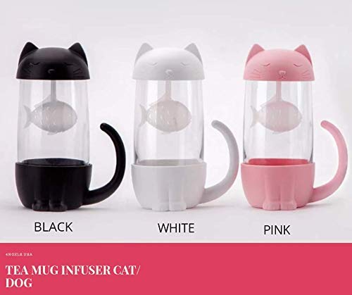 Tazza di tè alla tazza di vetro del gatto della bottiglia dell'acqua con il filtro dell'infusore del tè del pesce Filtro 280ML 10.5 * 7.1 * 15.4cm (Consegna casuale bianca, rosa, nera, blu)