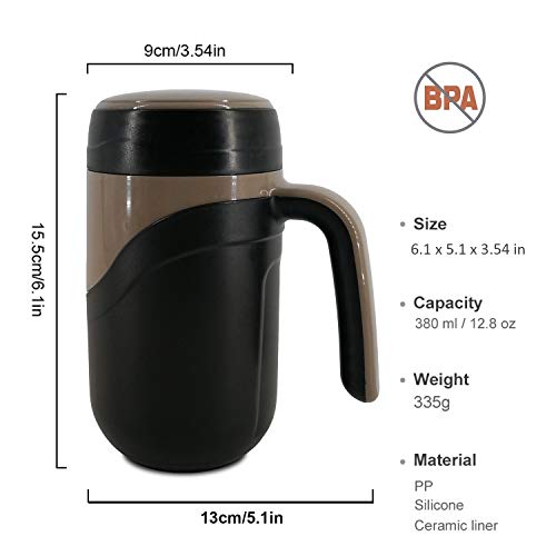 ★ Mantieni la temperatura per ore - Non è un thermos sotto vuoto. È una tazza foderata in ceramica a doppia parete con guscio in plastica. C'è uno strato isolato tra la fodera in ceramica e la custodia in plastica, quindi questa tazza in ceramica può mantenere la temperatura 2-3 ore in più rispetto alla tazza in ceramica tradizionale.