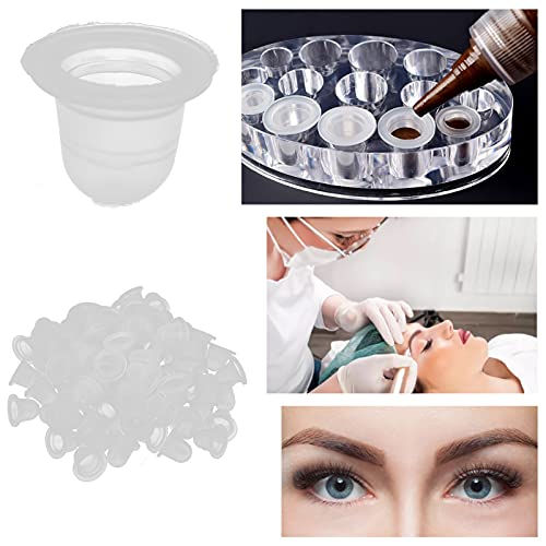 【Ampiamente uso】 Le coppette con anelli per pigmenti per trucco permanente sono perfette per la pratica in studio o per l'uso domestico per pigmenti, inchiostro, colla di fissaggio, colla per extension ciglia e applicazione di pittura. Uso monouso, comodo e igienico, riducendo il lavoro degli artisti