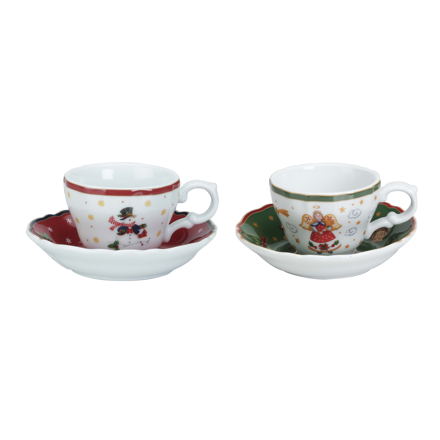Questo allegro e colorato set di tazze da caffè è ideale per gustare il tuo infuso preferito a colazione o a merenda. Caratterizzato da allegri decori natalizi, sarà l'accessorio perfetto per bere una calda bevanda durante le fredde giornate invernali del periodo di Natale. Ogni tazza è dotata di piattino coordinato e ha capacità di 180 ml. Set lavabile in lavastoviglie e utilizzabile nel forno tradizionale e in quello a microonde. L'immagine del prodotto è puramente illustrativa e sarà spedito in uno dei colori e decori disponibili. In caso di esercizio del diritto di ripensamento le spese di spedizione saranno a carico del consumatore.