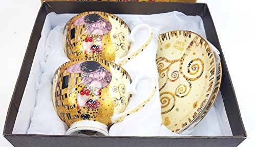 P1 2 Tazze 2 piattini in Porcellana Gustav Klimt Motivi - Il Bacio Limited Edition