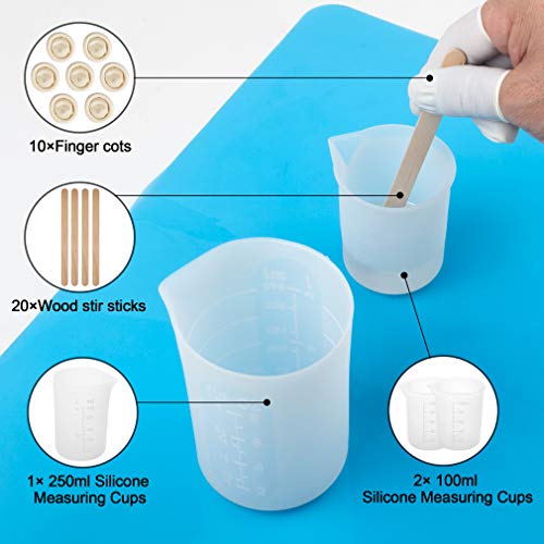 Tazze di Resina epossidica,Tazze di miscelazione,Bastoncini da miscelazione, tappetino in silicone, lettini per le dita, guanti, misurino in silicone da 250 ml