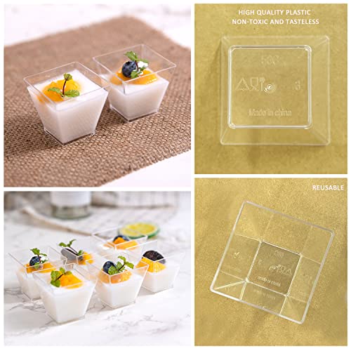 Design unico: tazze da dessert in plastica con design quadrato moderno trasparente, si fondono meglio con la maggior parte degli eventi e delle occasioni, rendono il cibo più attraente e lasciano un'impressione duratura su di te