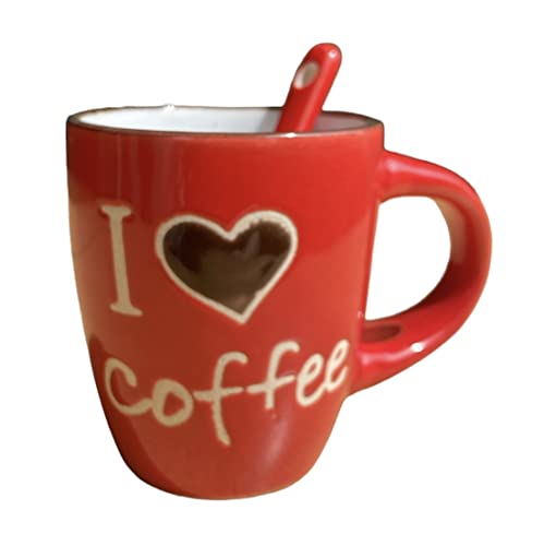 Tazzina da caffè con decorazione I LOVE COFFEE con cuore, in ceramica di alta qualità, adatta per microonde e lavastoviglie.