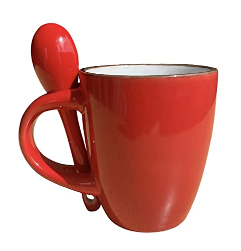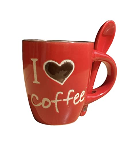 GMM TAZZINA CAFFE', TAZZINA GINSENG,' IN CERAMICA CON CUCCHIAINO INTEGRATO, TAZZINA DI COLORE ROSSO E BIANCA CON SCRITTA “I LOVE COFFEE”, ALTEZZA 6.5CM, CAPIENZA 65 ML.