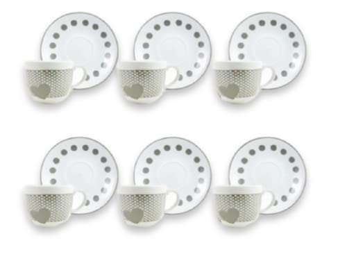 Tazzine caffe 6 pz e 6 piattini in ceramica con appendino metallico in scatola cartone