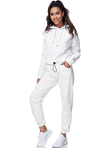 Tazzio Tuta da jogging da donna con cappuccio e pantaloni da jogging F200, bianco, XL