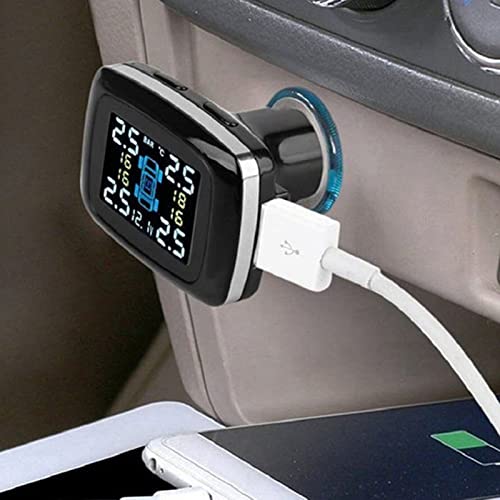 Tbest Schermo di visualizzazione Digitale, Sistema di monitoraggio della Pressione dei Pneumatici Sostituzione per accendisigari TPMS Sostituzione per Auto con 4 sensori Interni