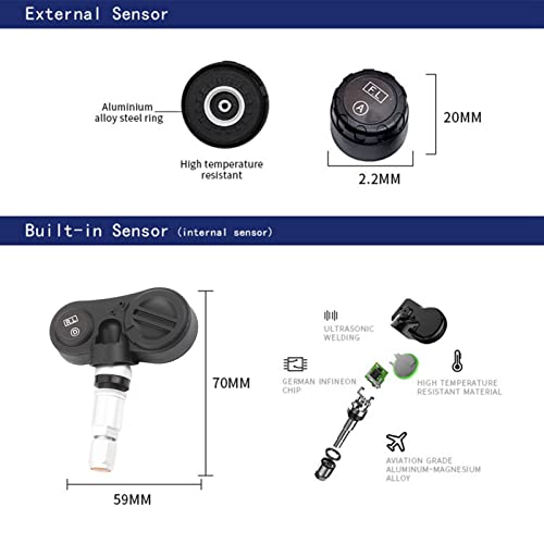 Susostituzione per funzione: con 4 sensori interni, 4 dati di pressione e temsostituzione peratura dei pneumatici a colpo d'occhio. Asta fissa, unità di pressione Psi e unità di temsostituzione peratura fissa sostituzione per selezione.