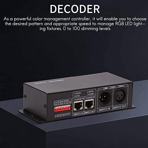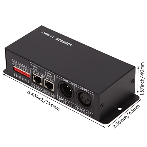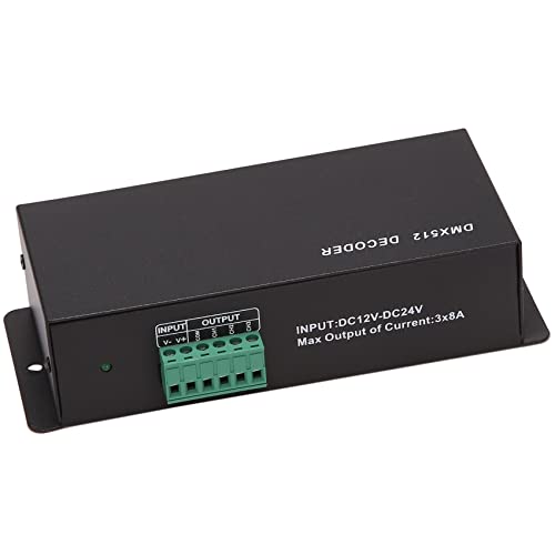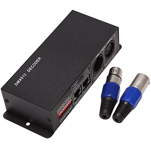 Tbkoly 4CH DC12-24V RGBW 512 Decoder LED Controller, RGB LED DMX512 Decoder 3 Canali x 8A per LED Strip Light, Nero