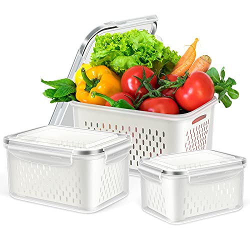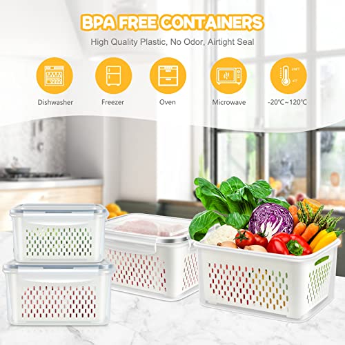 TBMax Contenitori per alimenti freschi per frigorifero, confezione da 4 contenitori per frutta e verdura con cesti di scarico