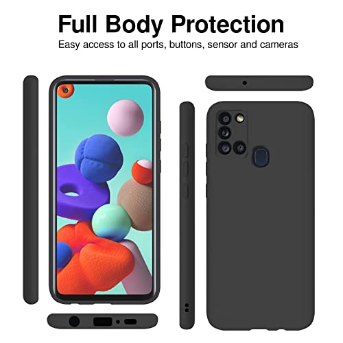 TBOC Cover per Samsung Galaxy A21s [6.5"] Custodia Rigida [Nera] Silicone Liquido Premium [Sensazione Morbida] Fodera Interna Microfibra [Protegge Fotocamera] Antiscivole Resistente Graffi