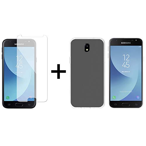 TBOC Pack: Custodia Gel TPU Trasparente + Pellicola Protettiva per Display in Vetro Temperato per Samsung Galaxy J3 (2017) (5.0"). Silicone Sottile Flessibile. Resistente Urti Graffi Abrasioni.