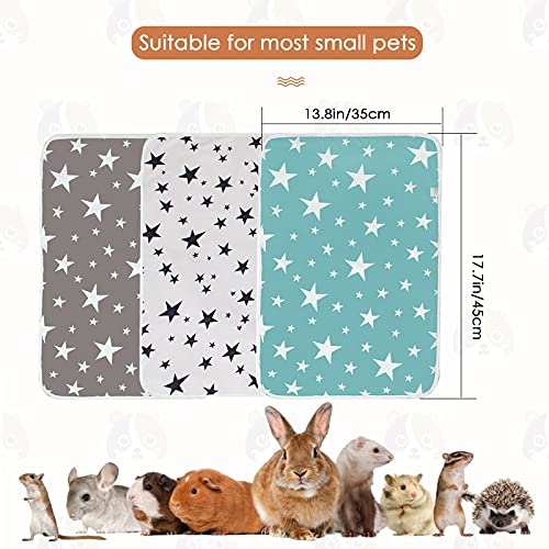 TBoxBo, set di 3 fodere per gabbie di porcellino d'India, lavabili per pisci, antiscivolo, per animali di piccola taglia (verde+grigi+stelle nere)