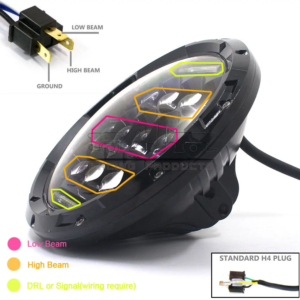 TCMOTO 7" Motorcycle LED Headlight DRL Daytime Running Light 6000K for Harley Fat Boy FLSTF Lo FLSTFB Touring Trike Softail