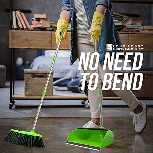 TDBS The Dustpan and Brush Store Set Scopa e Paletta con Manico Lungo - Scopa per spazzare con Paletta Lunga (Verde)