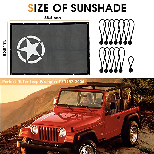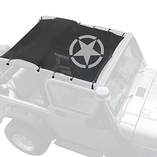 TDHLW Parasole Mesh Sun Shade Cover Soft Top Protezione UV Posteriore Anteriore per Jeep Wrangler TJ 1997-2006 2 Accessori per Porte, Full Length Mesh Sun Shade,Pentagram